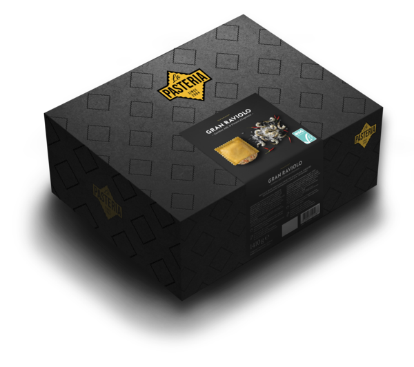 PÂTES AUX ŒUFS, FARCIES AU MASCARPONE, CÈPES ET SEMOULE DE MAÏS 60 %, SURGELÉES